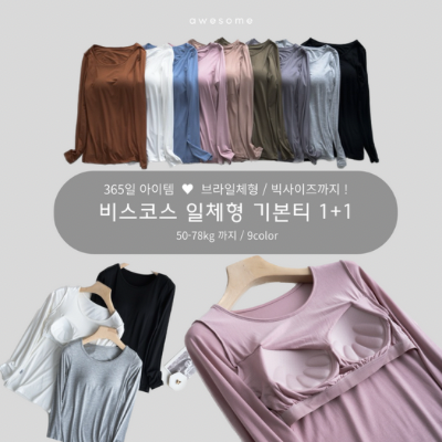 브라 따로 필요 없는 일체형 기본티라 간편하게 입기 좋아요