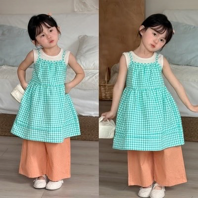 # 그린체크원피스+오렌지바지set (아이보리 이너 미포함!!)