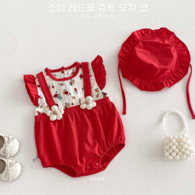 [수입] 소이 레드꽃 슈트 모자 셋 (-4/16마감)