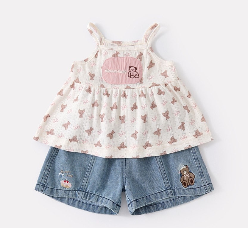 [수입]자카드곰돌데님팬츠셋