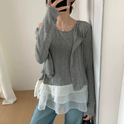 on.[CD632]시스루캉캉나시크롭가디건세트