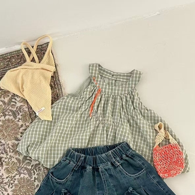 아이아이.올리브체크벌룬블라우스