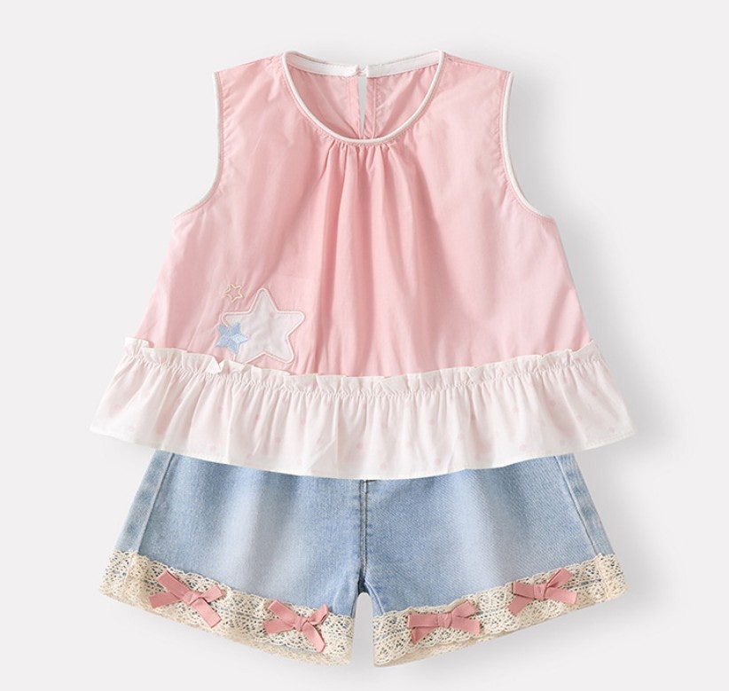 [수입]레이스리본데님셋